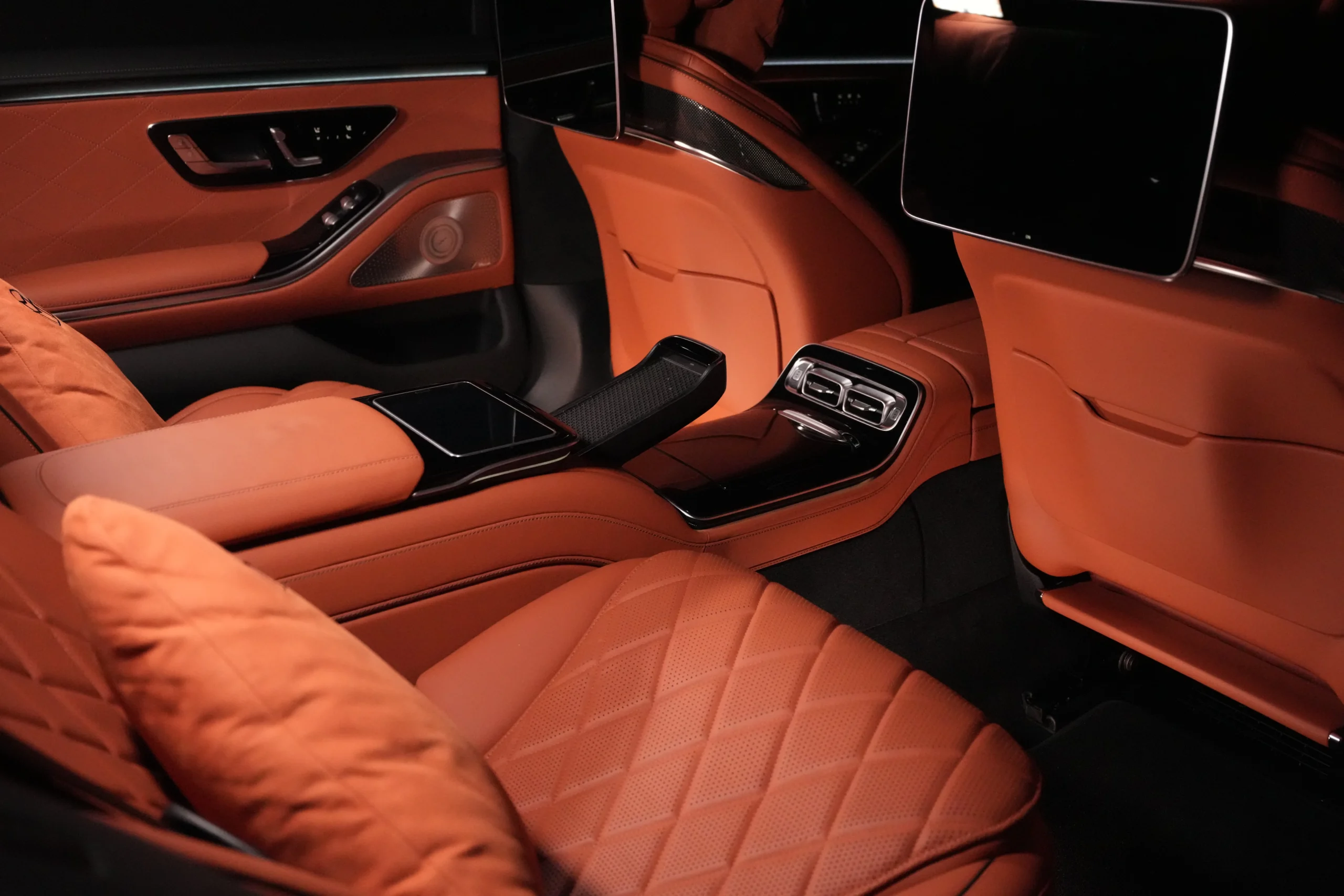 Dourado Luxury Car showcases the exquisite craftsmanship of the Maybach S 500 through hand-finished materials, including exclusive Nappa leather upholstery, open-pore wood trim with Maybach lettering, and ambient lighting with 64 colors that transform the cabin into a sanctuary of tranquility.The advanced 4MATIC all-wheel-drive system in the Mercedes-Maybach S 500 4MATIC Long ensures confident handling and stability in all conditions, while the AIRMATIC suspension with E-Active Body Control anticipates road imperfections for an unrivaled magic-carpet ride available through Dourado Luxury Car.