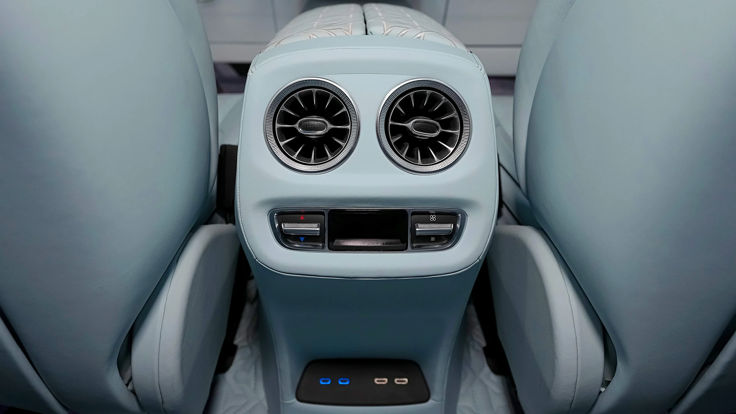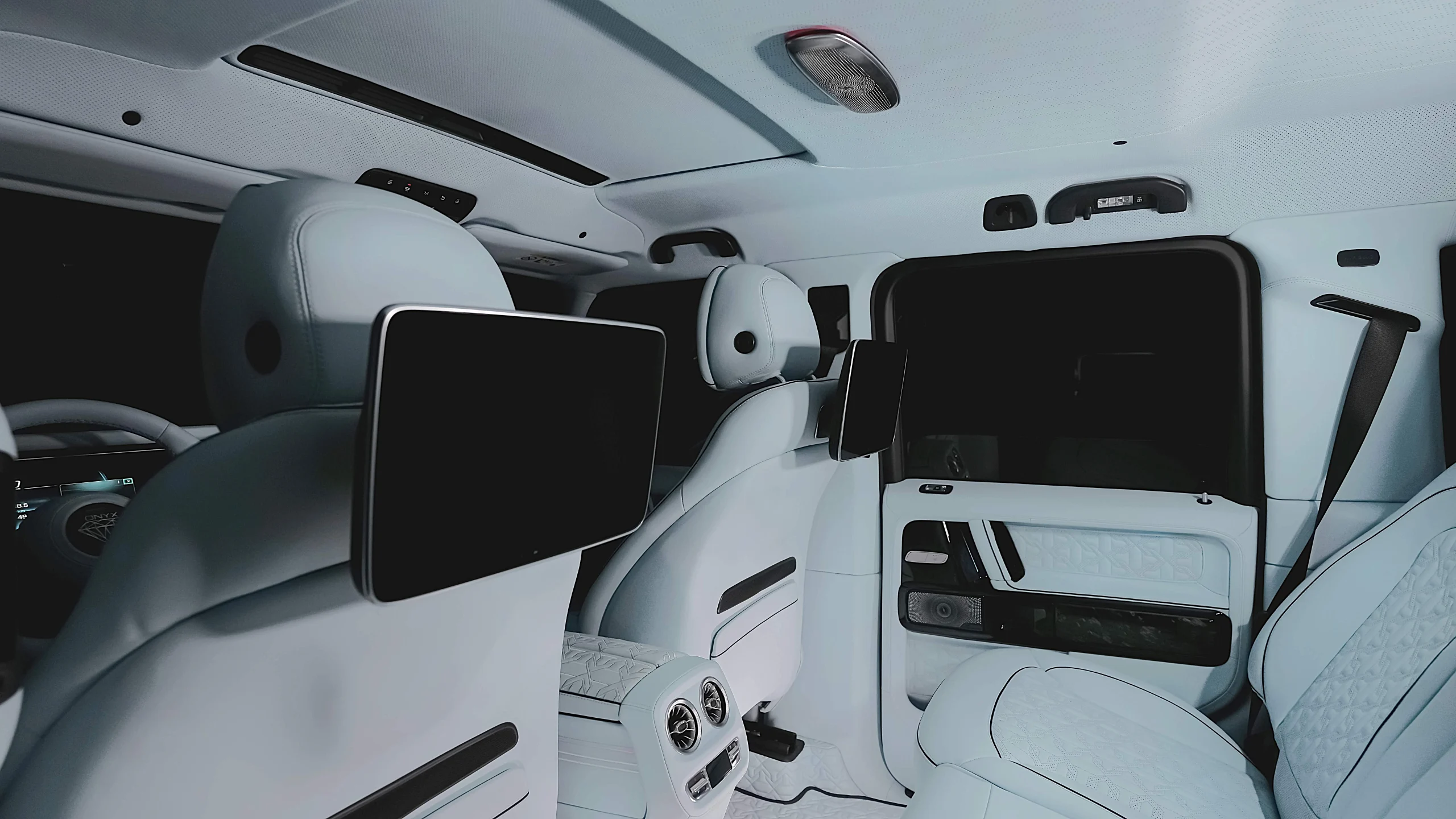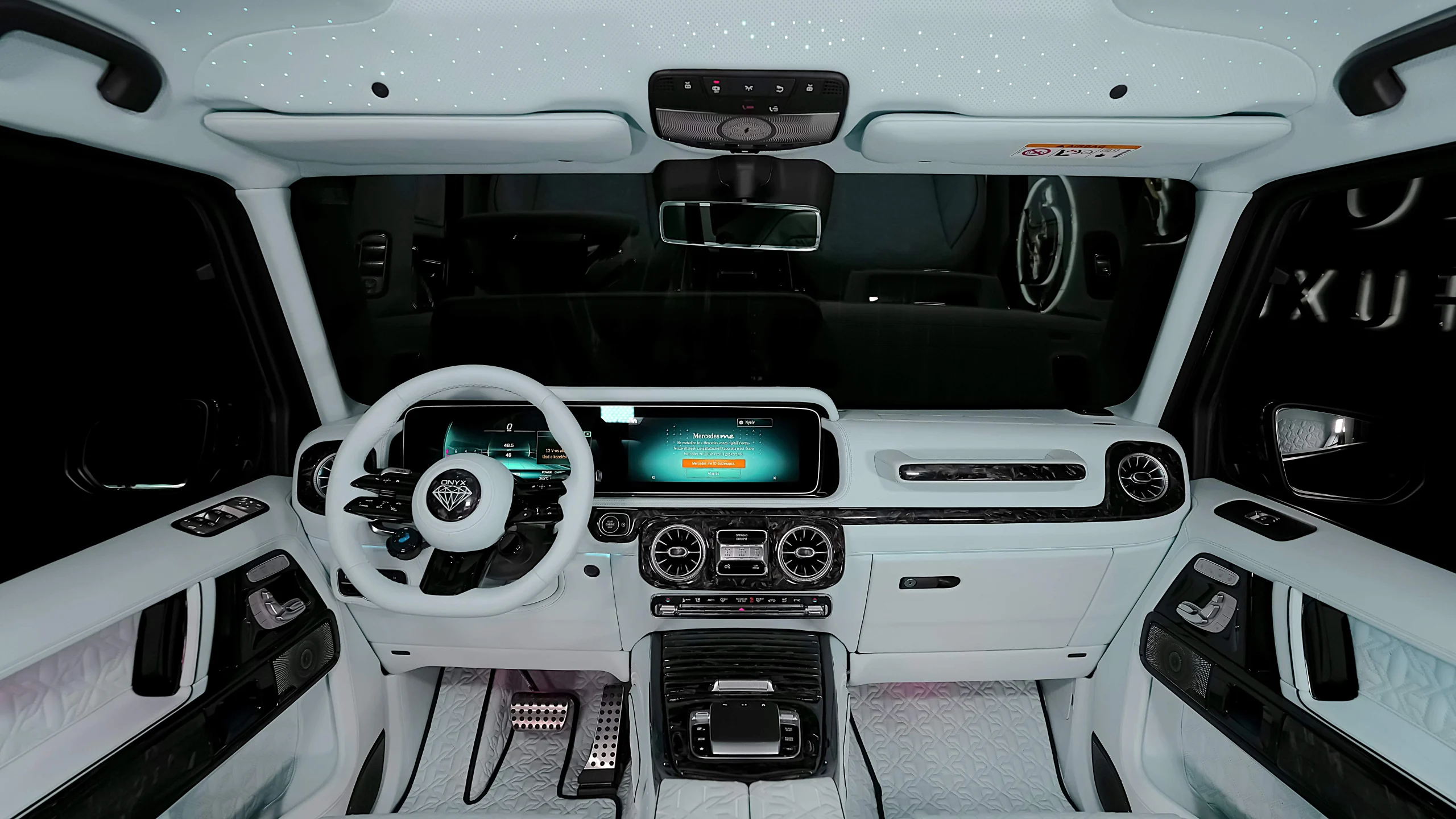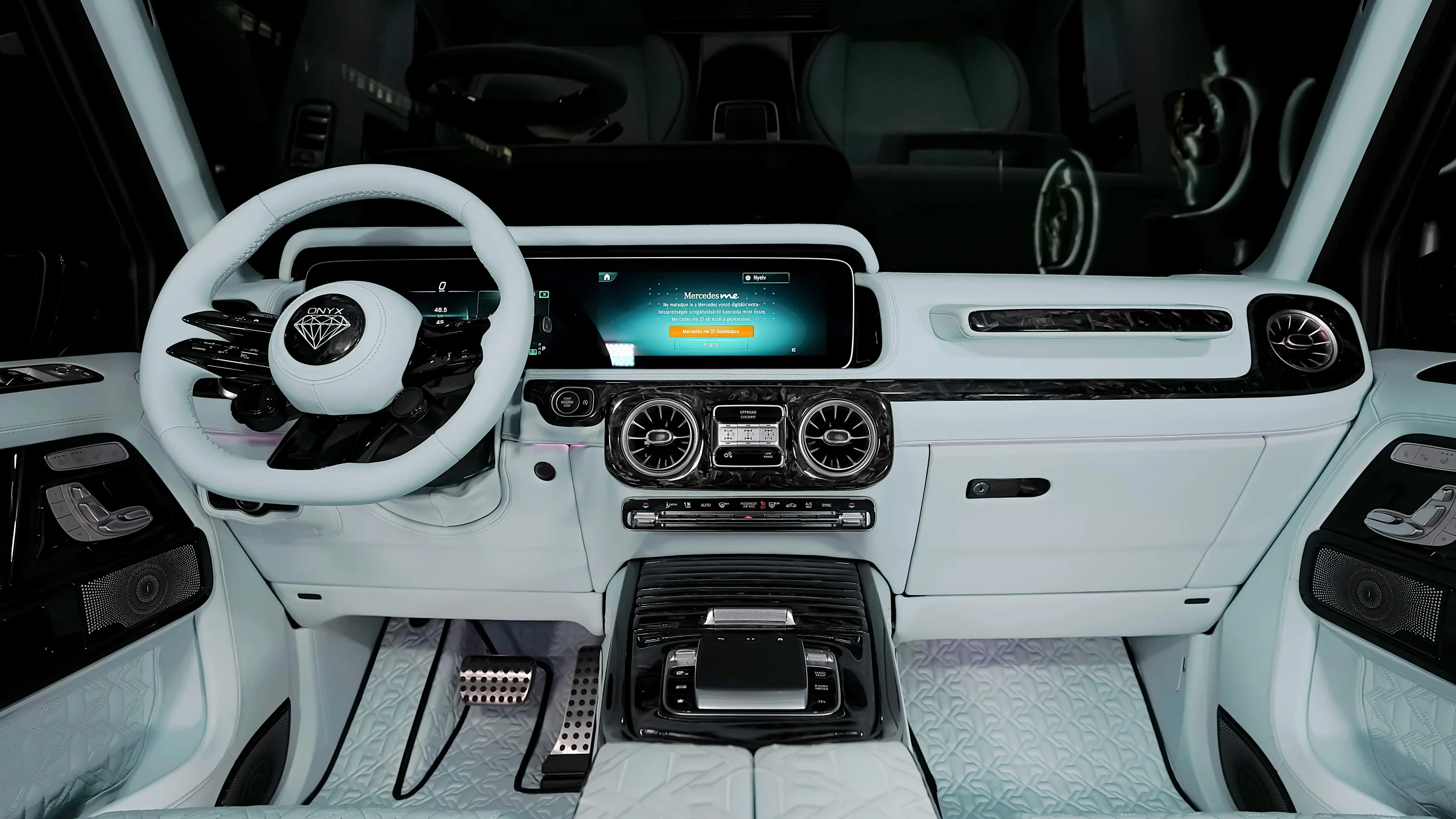 – Complete Refined Interior by Exclusive Leather Sorts Seats Baby Blue with Black Stitching matched with Onyx Emblem