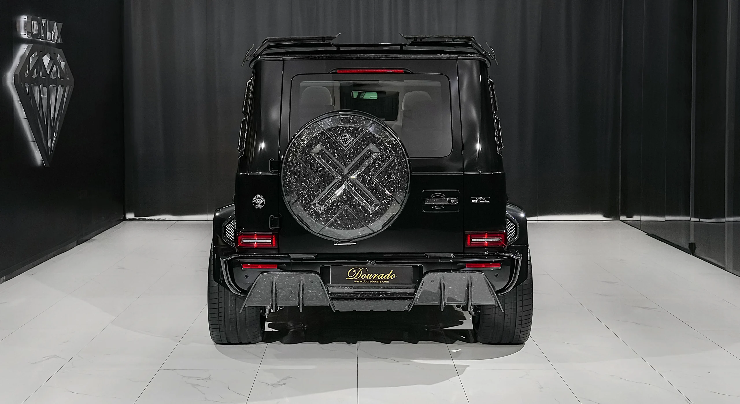 – Visible Onyx Glossy Forged Carbon Spare Tire Cover with Onyx Logo