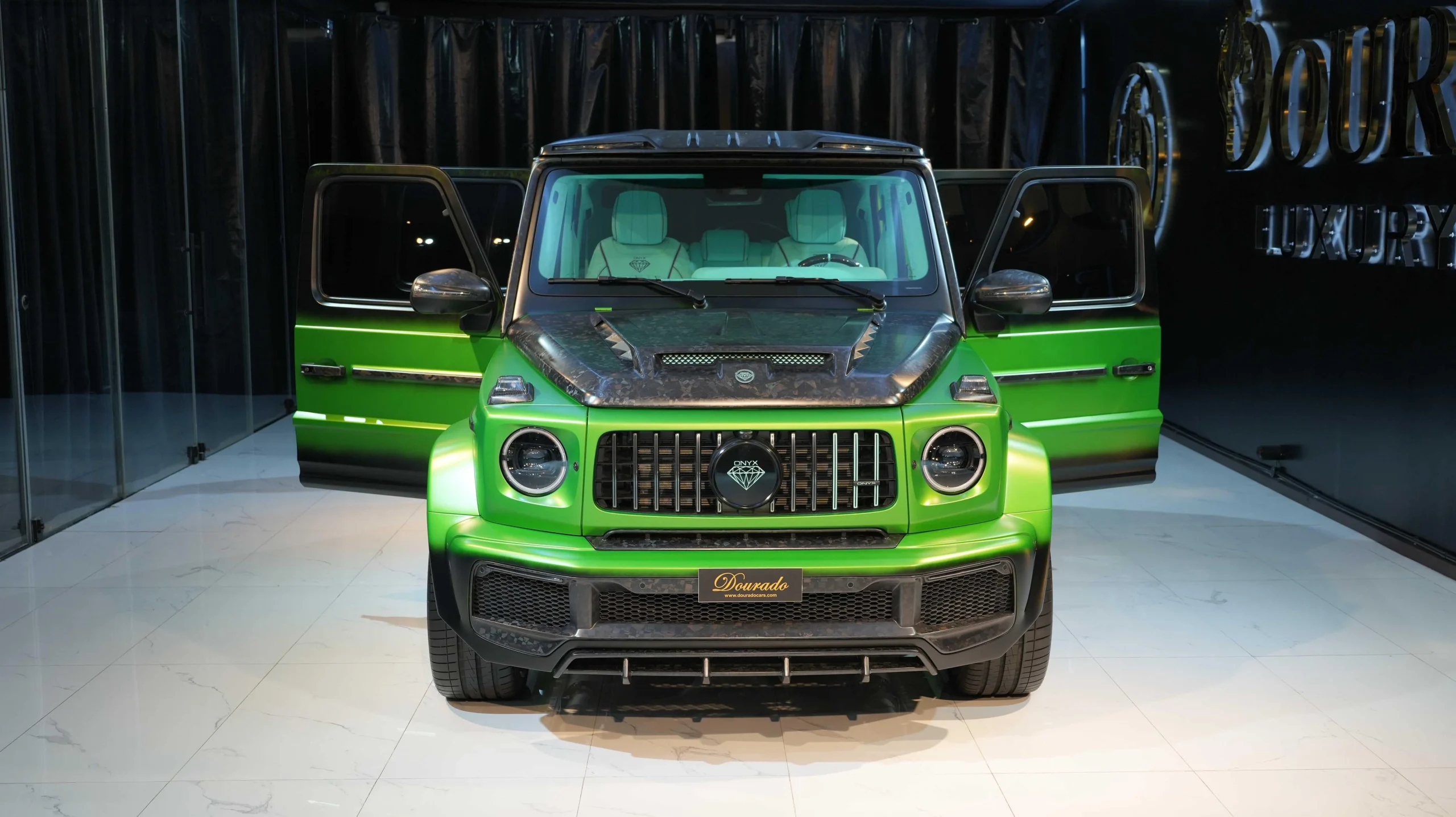 The Mercedes-Benz G7X Onyx Concept 1 of 5 Green Light & Black Magno is known for its iconic and rugged design, and it has been the basis for various special editions and customizations over the years. These special editions often feature unique styling, additional performance enhancements, and luxurious interior upgrades. Additionally, you can inquire about availability and pricing through their online contact forms or by contacting the DOURADO LUXURY CAR store directly.