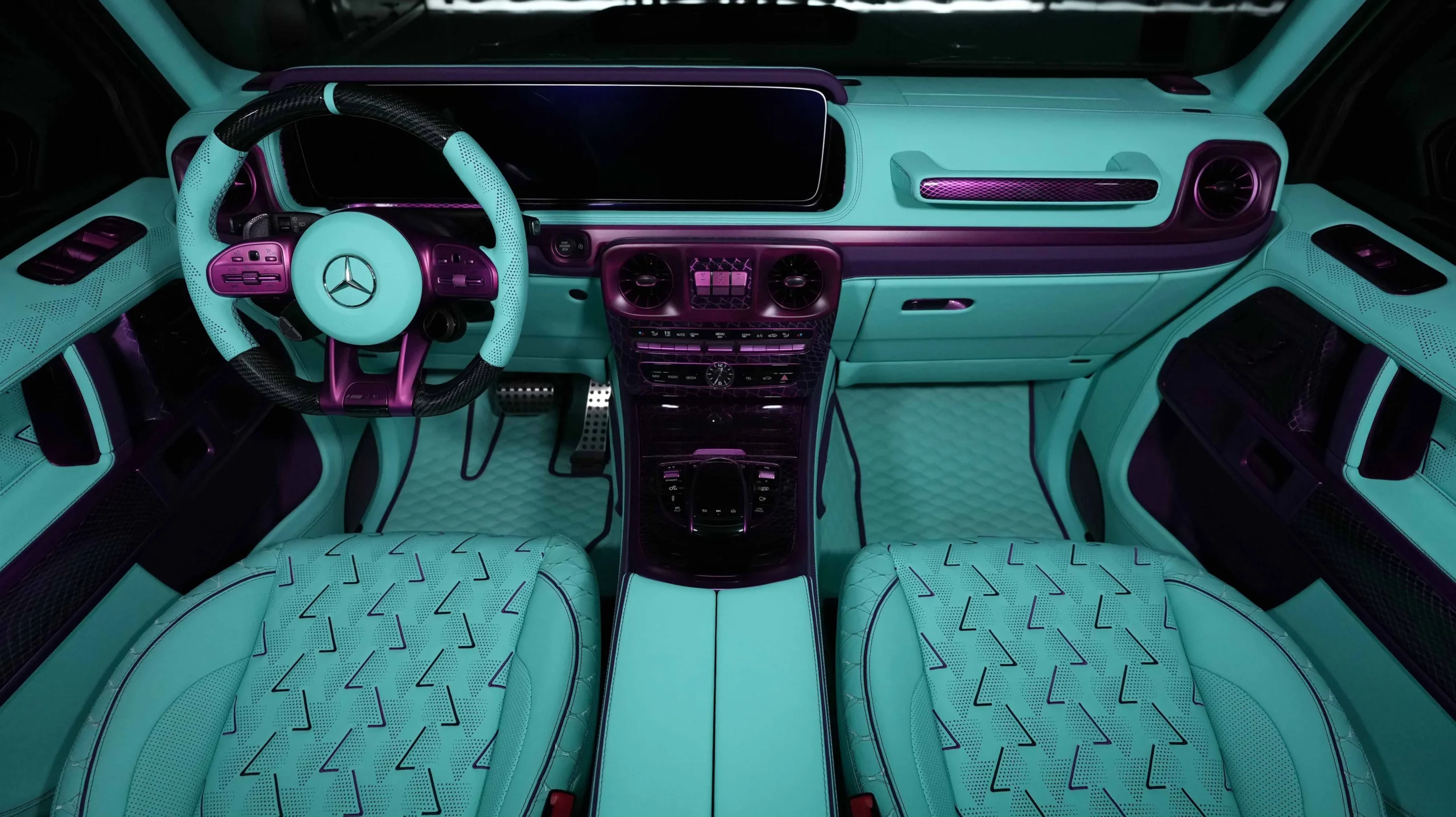 – Complete refined interior by exclusive leather sorts seats made in tiffany blue and purple stitching matched with onyx emblem