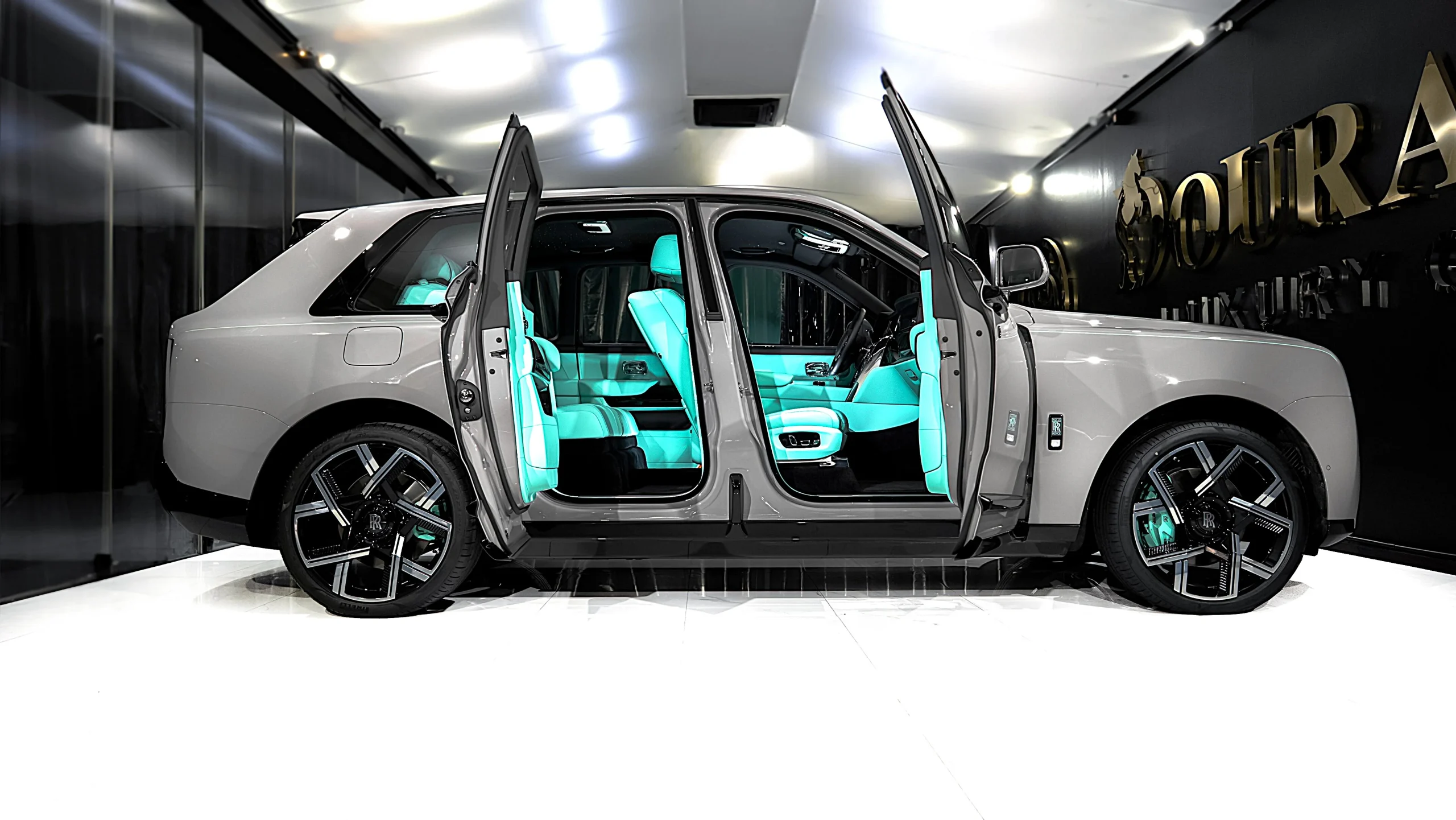 At Dourado Luxury Car, each Cullinan Black Badge is fitted with a customized exterior treatment, which may include satin or gloss black finishes, unique paintwork, and subtle accents that emphasize individuality and artistic presence on the road.