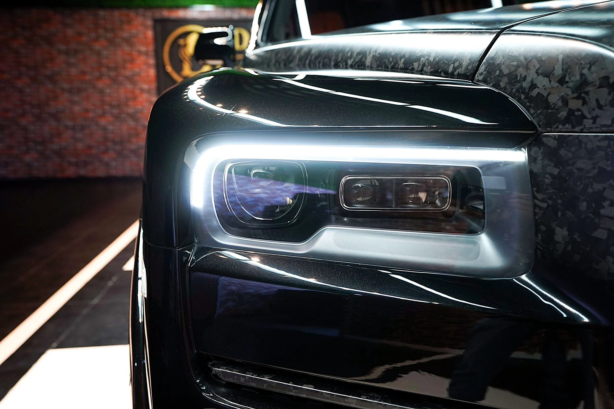The Diamond Black exterior of the Cullinan Onyx Concept exudes a sense of mystery and power. This deep, lustrous shade is achieved through multiple layers of paint, meticulously applied and hand-polished to achieve a mirror-like finish. The dark hue accentuates the vehicle’s imposing presence, making it a true head-turner on any road. The signature Rolls Royce grille, adorned with the Spirit of Ecstasy, and the sleek lines of the bodywork enhance the Cullinan’s authoritative stance, giving it a regal yet contemporary look.